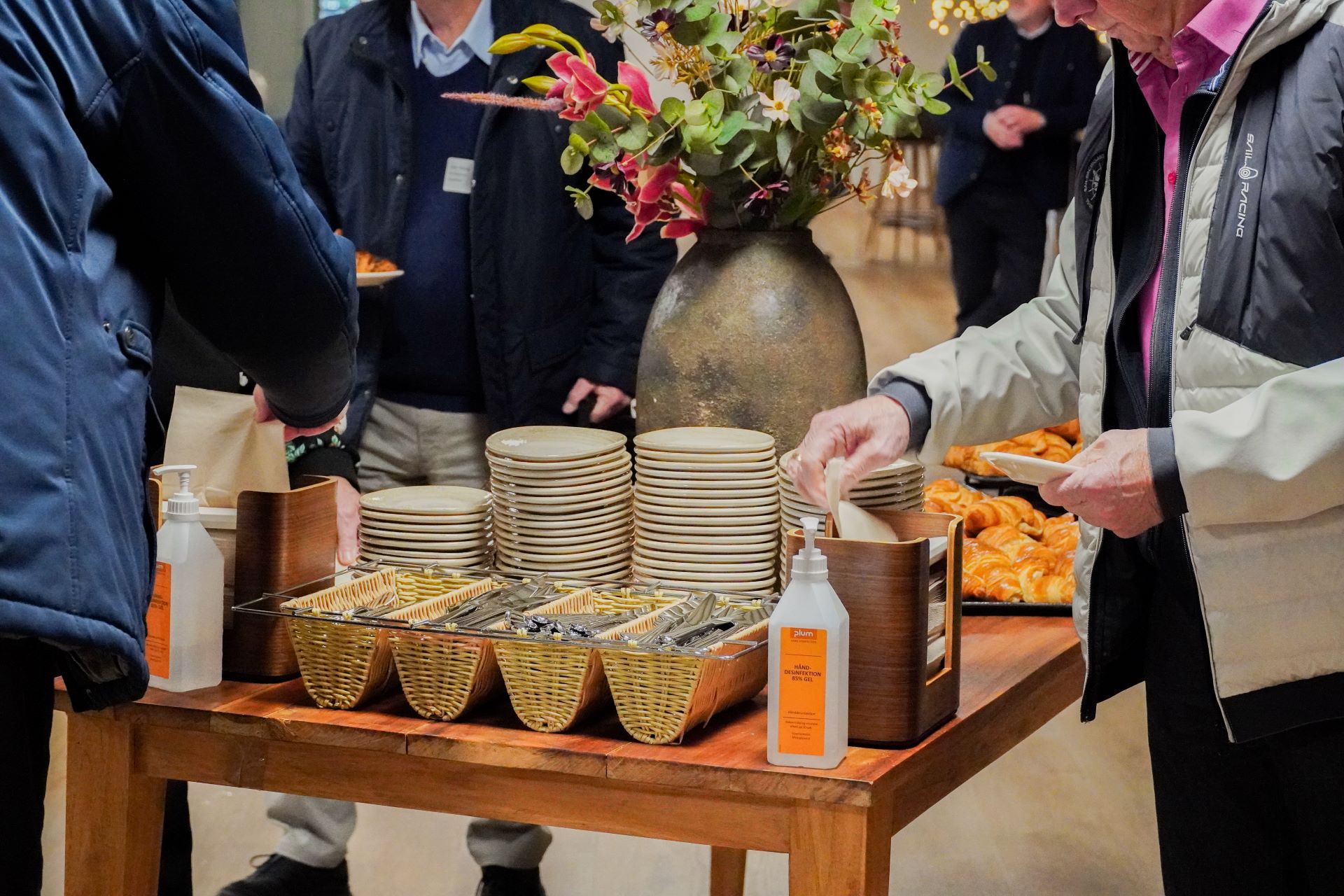 Vi står i forhallen, hvor folk har travlt med at tjekke ind, finde navneskilte og nappe en morgencroissant, inden det går løs i ”Jylland”, som salen, hvor det hele skal foregå, hedder.